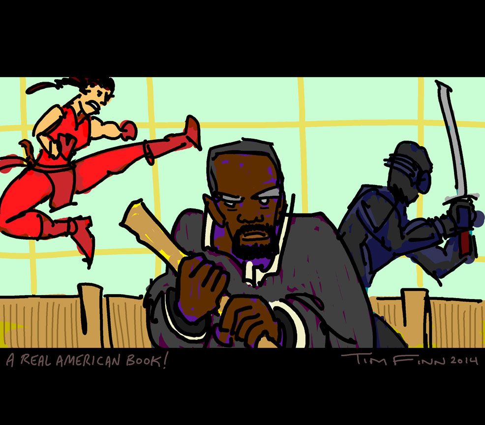 In part three, Duke, wearing said mustard shirt and bandolier comes in and mumbles “Who the Hell was that chump?”