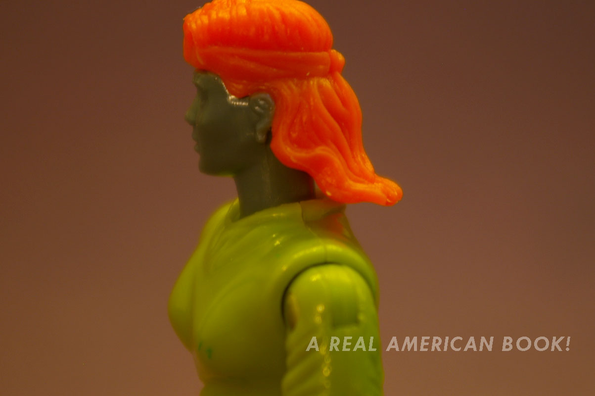 Today’s post is a test shot of Sonya Blade. Erm, daytime colors, not “Movie Edition.” MK fans will have to chime in below in the comments (“MOOOOOORTAL KOMBAAAAAAT!”) and tell me why she’s awesome. I only ever saw the first movie and it’s been awhile. But not fully painted, and using (for certain components) whatever plastic was last in the mold, she (as do all test shots) comes across as wondrous, strange, and frightening. And as I’ve probably said elsewhere, an unpainted face reveals more of the sculpted details. Also of note, her hairpiece is a secondary sculpt, a separate piece glued on that’s not meant to come off.
