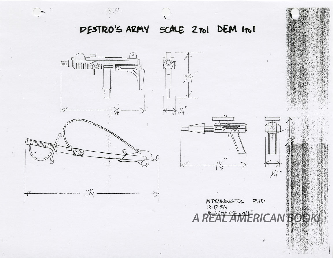 Here’s what the sword, plus those two fun firearms, look like in Mark Pennington’s original sculpt sheet: