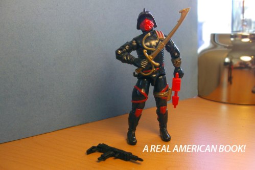 It’s a handsome take. I’ve always preferred the neutral face plate of the 1986 Viper or the evil bank robber look of the ’82 Cobra Soldier. Here the Iron Grenadier looks like he’s always ready for a gas attack, and I’d prefer such a specific role, guy-who-enters-gas-attack, not go to the “regular” legions of Destro’s soldiers. I’d rather there have also been an Iron Grenadier somehow crossed with a Toxo-Viper, and then this plain Iron Grenadier have less technology on his face plate. (The 2008 recreation does a nice job dialing this back while still retaining the feel of Pennington’s original.) But with that black, red, and gold color scheme, and some details that nod to the regal and noble quality of the Destro character, the 1988 Iron Grenadier is a handsome action figure.