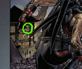 A whole other factor regarding the art is the color. Milen Parvanov has colored this current story arc. I like the work more than the series’ previous 100 or so issues, but Parvanov’s approach is, like Diaz’s, too busy for me. Photorealistic art seems to demand highly detailed color, but it all becomes mush. I’m going to zoom in on one panel. Technically it’s two, but it acts like one: