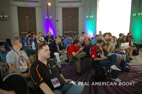 Then we headed to a small area at the other end of building with perhaps 150 seats where the three Joe panels would take place: