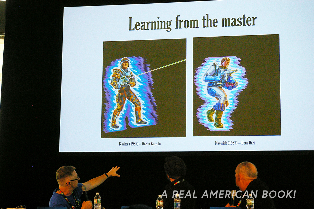 The gist of the panel was that Hart was in-house, and was to match Hector Garrido’s style as the line expanded and Hasbro needed more and more Joe paintings. DePriest and Hart lauded Garrido, who is elderly and not available to travel. Their musings made me realize what a rare thing it is for one artist to be the visual face of a brand.