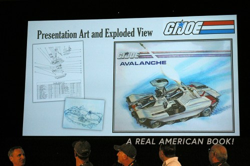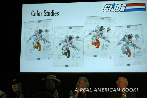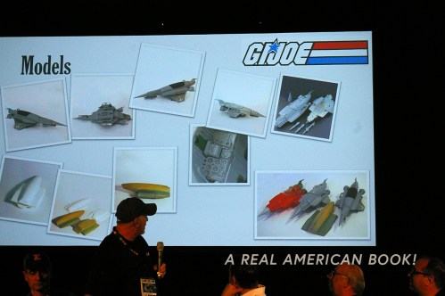 To be honest, this and the next panel were fun, but not revelatory. I’ve interviewed most of these gents, and I’m pretty familiar with how vehicles and playsets and figures were brainstormed, categorized, pitched, designed, approved, engineered, and manufactured. I don’t begrudge these panels at all, though, and it’s wonderful to see this many Joe alums all sitting together. A few details were explained and a few anecdotes that got tossed out were new to me, and even if it had all been stuff I did know it would still have been fun. We fans were watching a reunion of coworkers and friends. Bill Young and his wife had flown in from the West Coast, for example, and while we’re used to some of these guys meeting up at JoeCon, many hadn’t seen each other in 10, 15, 20 years.