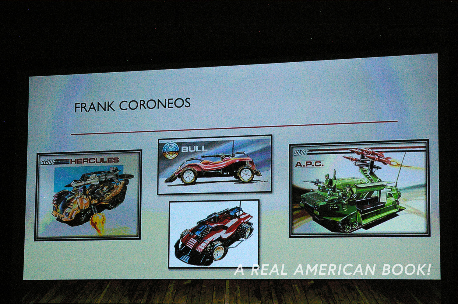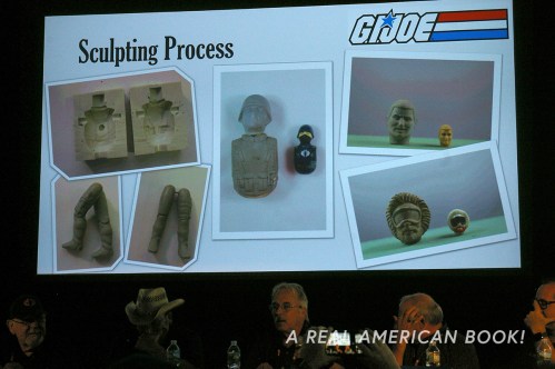 The two dinner panels were called “Walk Down Memory Lane” and “In The Beginning…1982,” and, my apologies, they blend together a bit. The first played on a loop over dinner, with photos from the 1980s and ’90s along with quotations Dan had gathered during his research and/or for this very dinner slideshow. The second tried to put the first year in chronological order — who started at the company when, what items were first as the nascent Real American Hero was coming together. Several designers sat on the small stage and made comments on the slides.