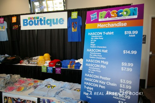 In the HASCON Boutique, I bought a few toys and put them in one of many collection baskets for recent hurricane victims. I noted that some of the convention-exclusive toys were sold out: