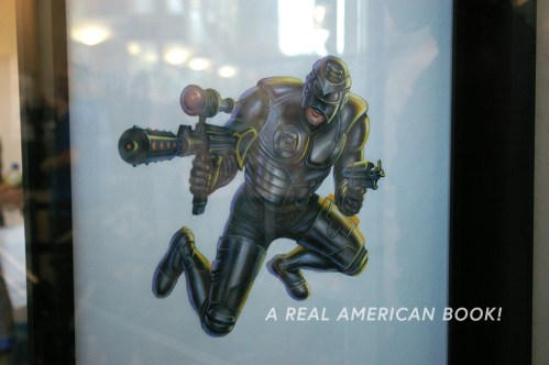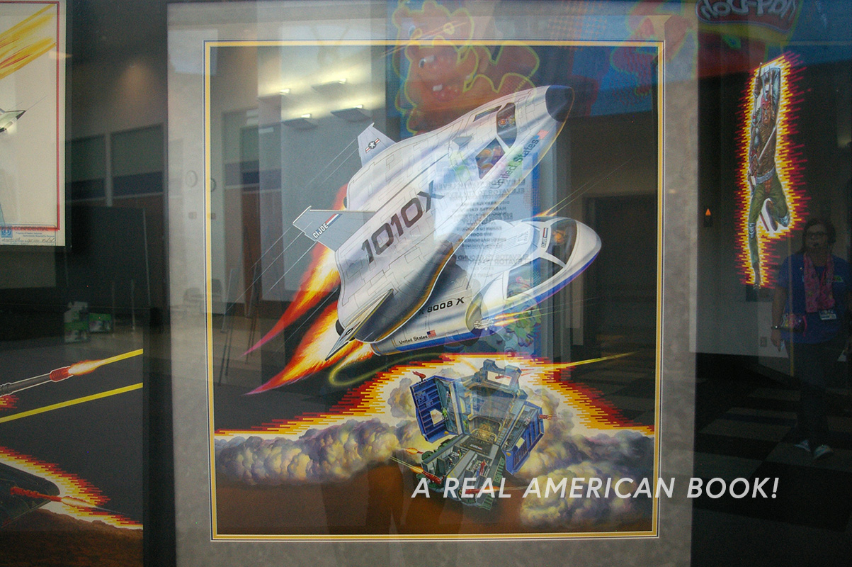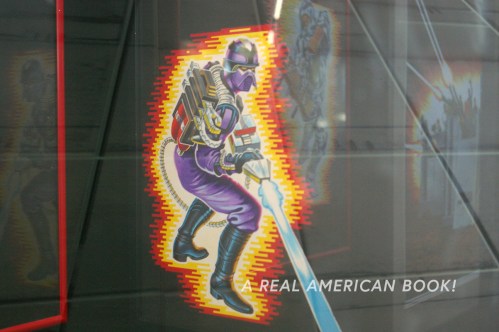 A dozen original package paintings were on display. There’s nothing quite like seeing a Hector Garrido G.I. Joe original. There’s especially nothing like seeing 9 of them all at once. One was by another artist (Doug Hart, probably?), and one was by another-another artist (not Hart or Lavoie). Sorry for the glare. Had someone stood behind me holding up a big, black coat, this would be minimized.