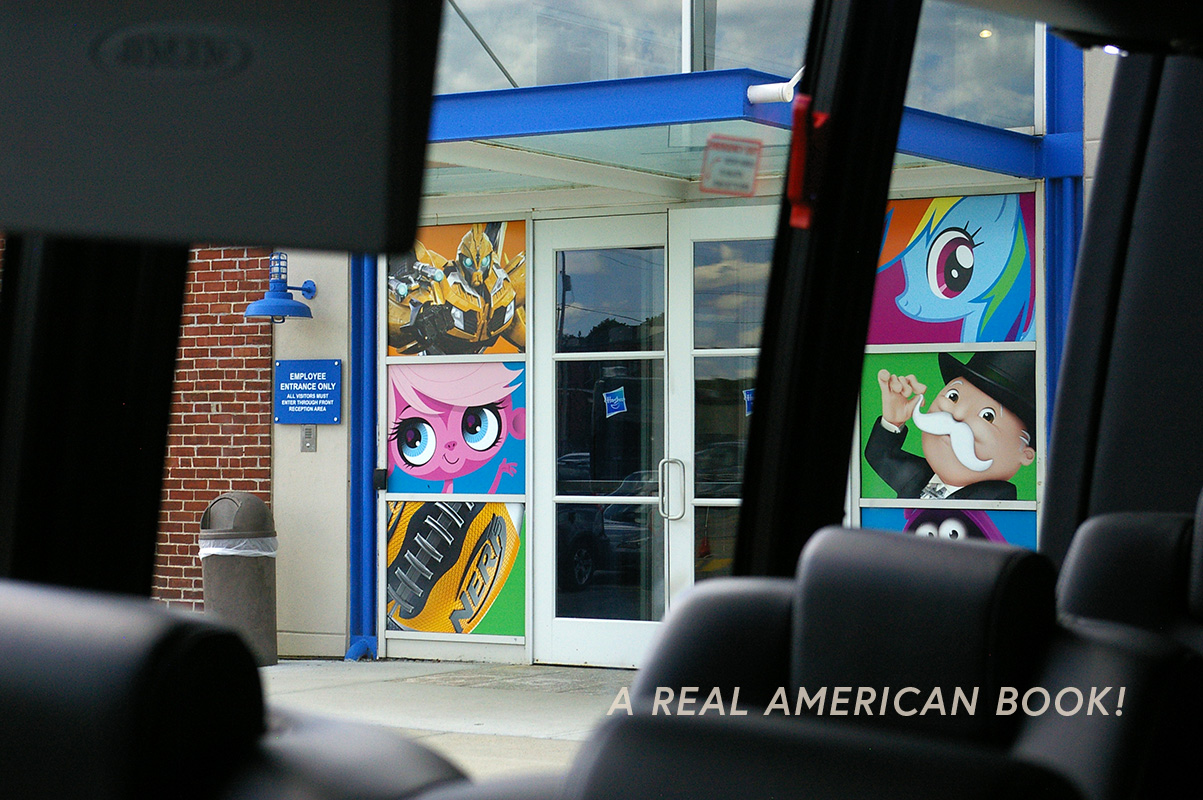 It’s a 15-minute drive. Pawtucket was a mill town, and it’s not particularly built up. (Hasbro, in fact, occupies four buildings here. Two facing each other on Newport Avenue, one across town, and a new one in Providence.) Out the window on Newport Avenue, turning the corner for the parking lot: