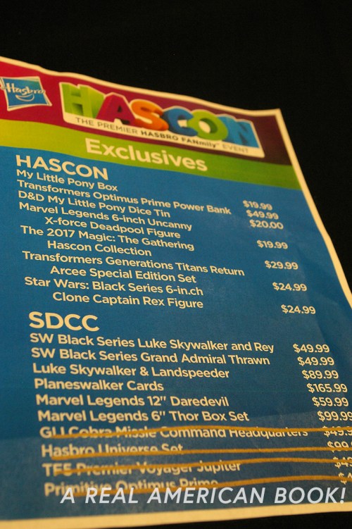 Ten-thousand words later and I’m almost as exhausted writing about the weekend as I was living it! Even though I didn’t write about Mark Wahlberg or Chewbacca Mom or kids auditioning for Hasbro or the Nerf blaster zone with families shooting each other, I hope you’ve gotten a good sense of HASCON 2017.