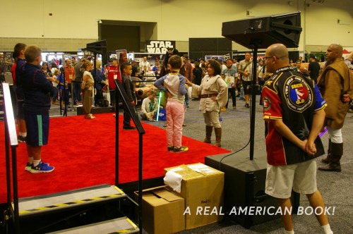 I’m not a gamer. I loved AD&D many, many years ago, but there’s only so much time in the week, you know? The same goes for most tabletop gaming. But I love the social aspect of it, and the tactile quality of pieces and cards and dice. While the top floor was that huge, ongoing Magic tournament space, there was a smaller one (but still pretty big!) here on the main con floor where HASCON volunteers were teaching parents and helping kids with the rules. Again, another reminder that HASCON was for families and kids as much as 39-year old nostalgics.