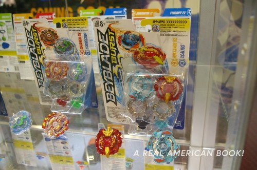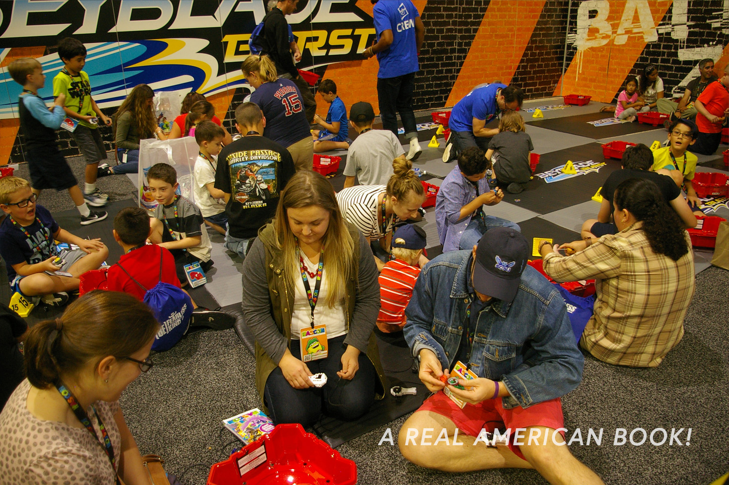 –were nuts to be into Beyblade at all. But a HASCON volunteer in the Beyblade section called over from a counter “Do you know about Beyblade?” and since I had time to kill and was open to being pitched, I mildly replied “I do not.” He showed me a bunch of different items, and the arena, and described the strategy–
