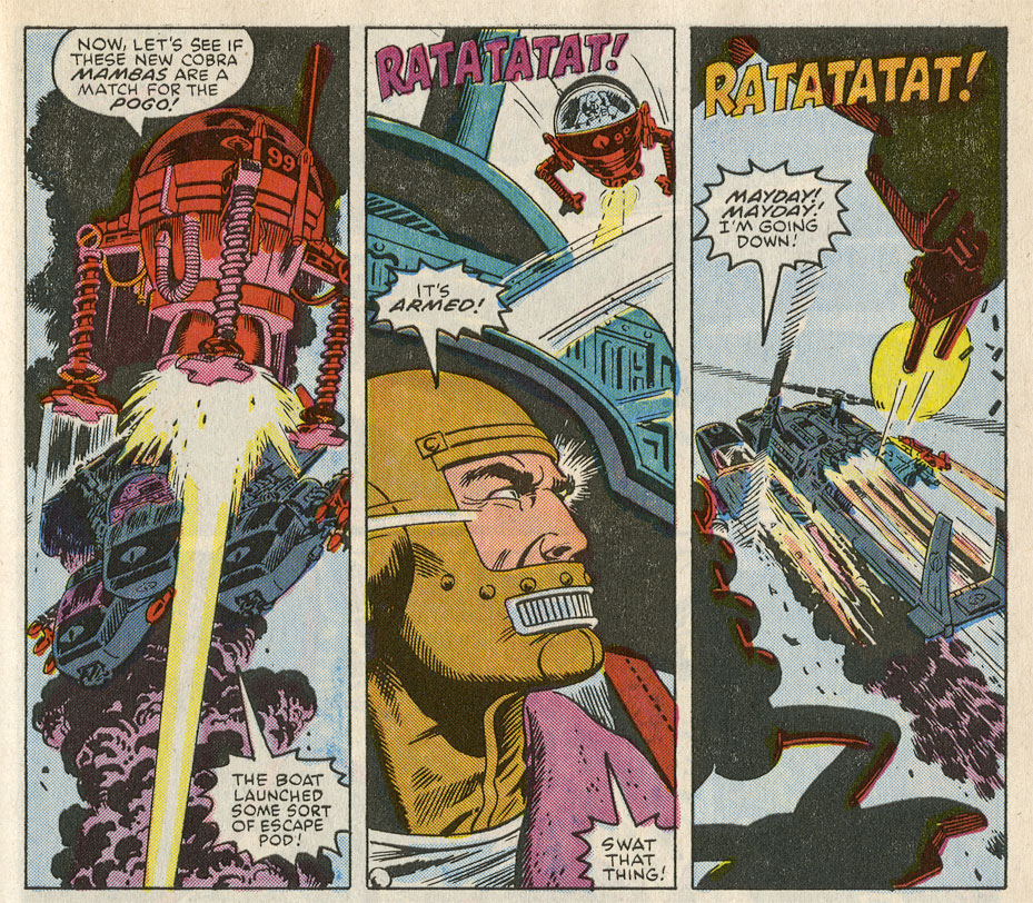 But of course, Heath’s art is literally not to be seen in G.I. Joe animation. I was first exposed to his work in 1983, but it’s not his drawings that appeared on my television. This is the odd truth of the character designer. Heath drew a few poses, and then storyboarders, layout artists, and animators on two continents drew their own poses and movements in Heath’s style. While his fingerprints are all over G.I. Joe (and a bunch of other ’80s cartoons), it wasn’t until I started reading comic books that I saw a reproduction of his actual line. In one of the fantastic convergences of ’80s culture, Heath in fact drew — pencils and inks — a whole issue of G.I. Joe. This was one of the ones advertised on television, featuring animation that made use of his model sheets!) — issue #24. It’s crisp and smooth, and looks just like the show.