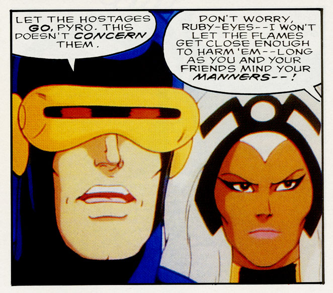 Last year I came across photocopies of Heath’s models for the wonderful 1989 pilot “Pryde of the X-Men.” This is my favorite 22 minutes of anything X-Men in all of television or film, and Marvel published a graphic novel adaptation of it, in case you’re wondering why this “screen cap” has word balloons–
