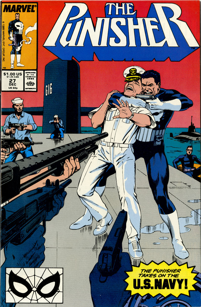 Wagner, coming from the Joe Kubert school (and the Larry Hama school) of torsion and cinematic, movie-like panel compositions, offers a lovely compliment for Heath, who utterly takes over. As a comic book reader, I missed all that work that made Heath well-known — the war comics for DC and such. But Heath was popping up in interesting places around 1990. Over writer Mike Baron’s great scripts, he drew a few issues of The Punisher that my brother and I certainly liked —
