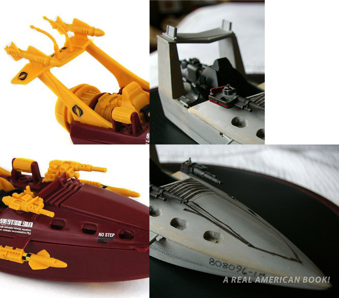 It’s embedded in my sense of the brand, that in comics and on television and in our living rooms these characters pilot planes and drive tanks into battle. And that these vehicles have as much personality as the characters themselves. Some are hefty, others are lithe. Some are realistic, others are total fantasies. Some, like the 1990 Cobra Piranha, are aggressive, yet small and swift. Here’s a lovely shot taken by Chad Hucal for YoJoe.com of this boat as it appeared at retail: