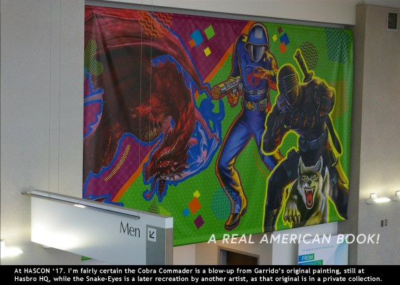 The words “icon” and “iconic” are thrown around a lot these days. Part of that is our worship of nostalgia and the familiar. Things we love are reinvented through business decisions, and we embrace those things reborn. But it’s important to mentally return to the genesis of these powerful and forever brands, concepts, and images. We can re-appreciate them in the context of their original power — THESE G.I. JOE PAINTINGS ARE AMAZING AND MAKE ME WANT TO BUY THIS TOY — and so we’re reminded that someone created that illustration, and that this man, this artist, was a real talent. And then we can mentally return to the present, seeing the echoes of Garrido’s images, remade (sometimes fully and literally) and recontextualized onto G.I. Joe Monopoly, giant banners at HASCON, t-shirts, and more. They don’t just sell specific toys at toy shops, but they are visual ambassadors of the brand, reinforcing its power and its reach.