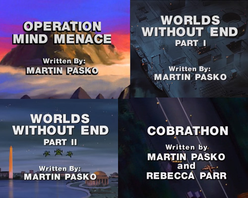 MARTY PASKO: From a writer’s point of view, you never know when you’re doing something that’s going to be memorable. Because you can never see this stuff from the perspective of the audience. But anyway, when we were doing the parallel world show, Steve, with his incredible intuitive sense about structure and pacing, said immediately, “This is good. This will be fine. But it has to be a two-parter to do justice to it.” And so it ended up being the first two-parter of the series.