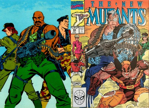 I’ll start with my surprise and not-surprise at the announcement that IDW was giving a G.I. Joe miniseries to Rob Liefeld to write and draw. Big shot artists tend not to take on licensed work in comics. If they do, it’s only a cover or a pin-up. They certainly don’t do whole issues these days. Even if at first it might not track that Liefeld would draw a G.I. Joe comic, it makes sense if you look harder. It’s clear that he’s a fan of G.I. Joe. Here’s proof. In 1986, Michael Golden drew the image on the left. Four years later, Liefeld copied it, or one might say inelegantly homaged it, and not in a subtle location. This wasn’t a background character in a panel inside the comic, but most of the front cover:
