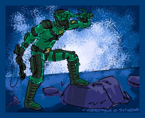 You may have heard of the internet drawing theme Inktober, wherein illustrators and hobbyists create one black and white ink drawing per day in the month of October. Some enterprising fan coined “Joevember,” where each day artists post a drawing of a G.I. Joe character. I’ve long wanted to try out one of these challenges, or 24 Hour Comic Book Day or Hourly Comic Day for that matter, but it’s always tough to find the time and the mental steel. But I had a big creative push eight weeks back related to my comic shop, some comedy I’m involved in, and this blog. Plus I thought of a funny word — Cobrember, and thus was born one additional personal art project for December 2020: each day a new drawing of a G.I. Joe villain. And because I like color and I like backgrounds, these weren’t just going to be line art, ink-only, spaceless vignettes, or monochrome. These were going to be considered compositions in full color.
