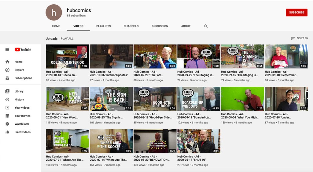 I temporarily closed my comic book shop, initially as part of the COVID shutdown, but moreso for long-planned renovations. The building in which my store sits is old and had structural weaknesses. It wasn’t in danger of falling over and it wasn’t unsafe, but sooner or later we were going to need to do something about it. The basic idea for 2019 was to rebuild one outer wall while closing off a contiguous sliver of the shop. We’d stay open, though there would be a floor-to-ceiling temporary plywood wall, we’d have to temporarily move the cash register, and there’d be noise (but no dust). When it was over, 12% of Hub Comics would be remade, although pretty close to how it has always looked.