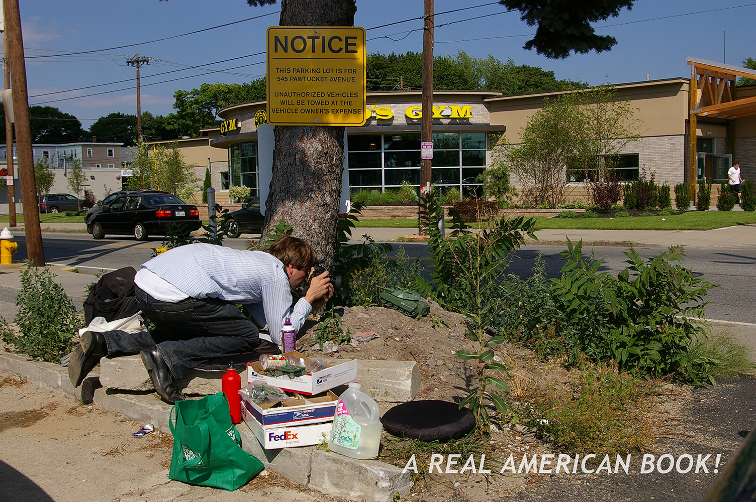 To Andre’s family, I’m thinking of you. Besides that great eye of his — the wedding couple kissing, leaning a bit forward toward each other, but on a curvature, reflected in the side window and door of the limo that will whisk them away, all in crisp black and white — I’ll miss his willingness to lie on his stomach (not precisely depicted here, but close enough), outside, to capture a dramatic low angle.