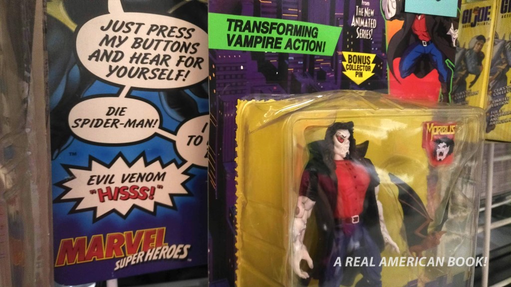 I’ve always been amused by how the ’90’s Spider-Man cartoon toned down Morbius, and getting a bit of the talking Venom figure from that era in the same shot is a compositional win.
