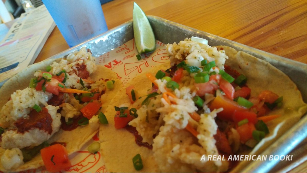 There was no wait and the food was great. I was texting updates to my wife at home. One reads: “No bar or restaurant has ever played the Chili Peppers’ Californication so loudly.” I’ve never been one to post photos of food, but I do try to be thorough in these con reports. These are the tacos I inhaled: