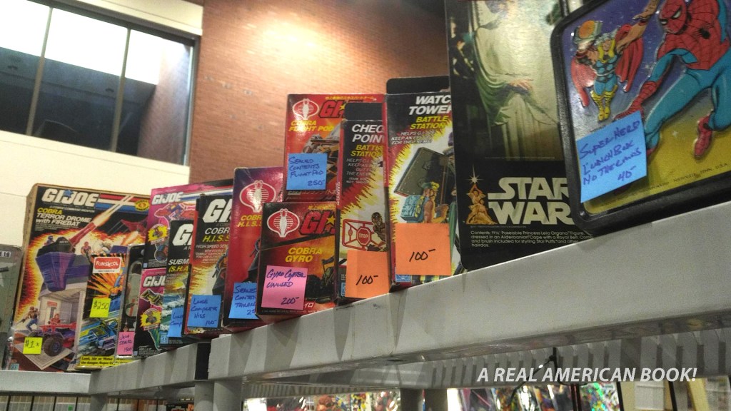 And from this lobby swap I bought all the sets of Shout! Factory Sunbow/DIC G.I. Joe animation DVDs. I have them all at home, but a lone disc got scratched, and it wasn’t going to be easy to replace just that one. I’d thought to spend $20 replacing that 4-disc set, but since a gent was selling five sets plus The Movie for $25, here was a cheap and easy way to get the replacement. Maybe give the redundant discs to my nephew for Christmas/birthdays?