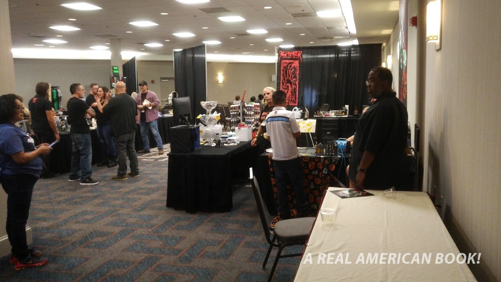 I realized that beyond the main, larger exhibit hall, there was a rear hallway with two smaller rooms with additional dealers, and a sign pointing to the panel room.