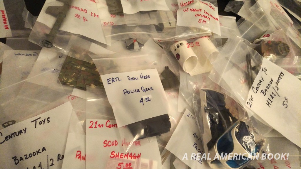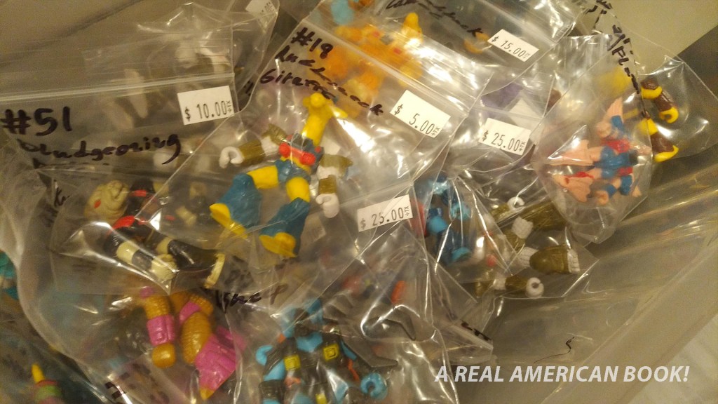 While eating, I spoke with Mike and Glynnis W. of Virginia. He’s a Boy Scout leader and had spoken in the panel the night before — from the audience — about Scouts and getting kids outside. I asked him a little about this. I’ve got a nephew who may not do Scouts, but could benefit from time away from screens and devices. Then I headed toward the con room. I didn’t mention this in Part One, but about five vendors were out in the hallway in front of the doors to the actual exhibit hall. One had a pile of loose figures, clearly labeled in zip baggies.