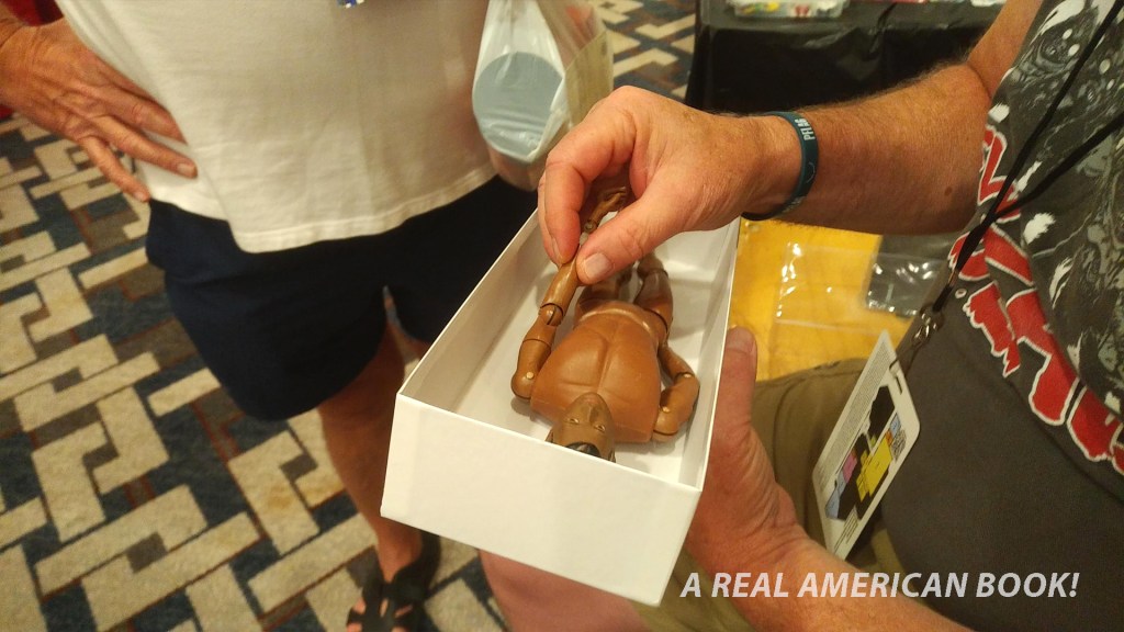 With Bishop himself taking a few notes on audience responses, the panel had a bit of a feeling of a networking event, which struck me as odd, but that’s a good take for a folksy convention, and for a panel with a small turnout — by all means, get to know the nice people who’ve shown up. A perfect example: the other gent in attendance had taught himself how to make an action figure line over the previous nine years, but was hitting walls getting it manufactured. Bishop said (paraphrasing) “We should talk, you and I, because I want to develop a toy line for my comic series.” I optimistically imagine the two then shared a bunch of helpful information, and I appreciated the serendipity of it all. If you’re not buying comics/art/toys, this is why you go to cons! (Years ago, at the official JoeCon, I guested on part of a panel, and mentioned a chapter in my book, and smart-and-friendly Hawk Sanders approached me after and said “Did you interview so-and-so for your book? I know him, I can get you his email. I hadn’t, so he did, and I did.)