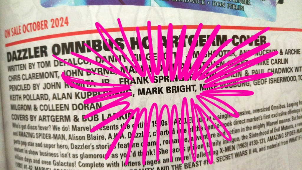 I am terribly sad to learn that Mark D. Bright has died. I will have more to say later this year or in 2025, but for now, I’ll send out some positive vibes to his family and friends, and reflect on my favorite artist in or out of comics.