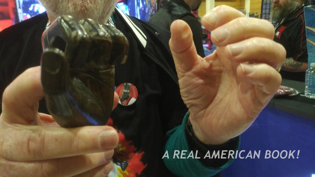 In the panel room I realized that blinking red light and loud buzz in the back of my head had been accurate, as I’d missed Pizza with Bob Brechin! I caught the last minute. There was a huge crowd, and it gave a boisterous standing ovation to the Brechin, who seemed greatly pleased by it. Partly I thought this was a ticked event, like “Breakfast with the Sarge,” but also, I wasn’t paying attention to the schedule. And let this be a lesson, don’t spend time alone in your room at a convention! But I do have Total Toy Books’ beautifully designed My Palitoy Story, Brechin’s autobiography, which details his time at Palitoy from 1967 until 1984, so I can experience a version of this panel. Pat Stewart said the panel was amazing.