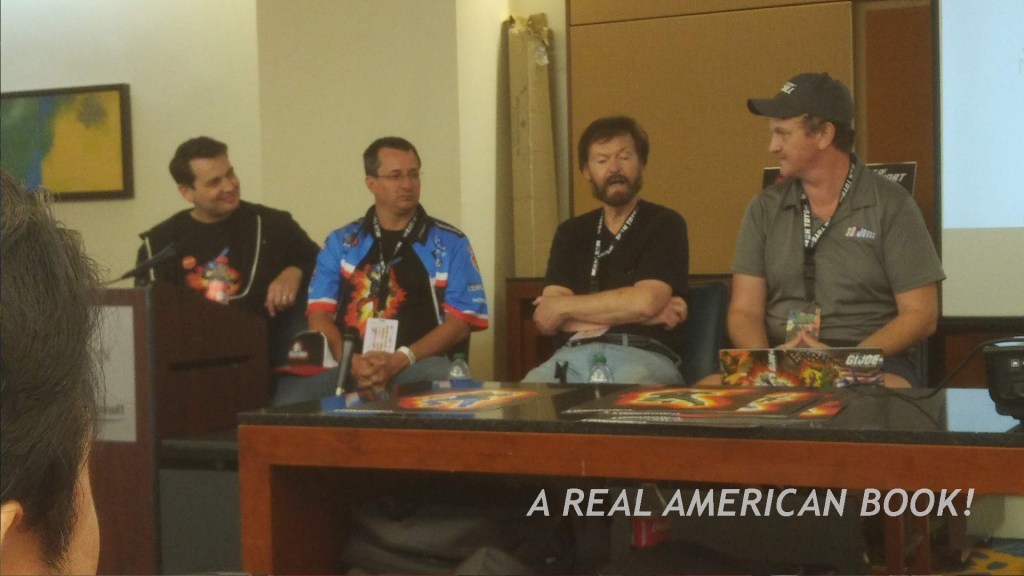 Mataxis gets a special salute for pulling triple duty at JoeFest. Not only was he selling his amazing art book at his booth, he was also representing Operation: Recall there, and in charge of AV at the con with his own equipment, (a cost-saving measure, I believe, as the convention center was going to charge far too much), and Mataxis also hosted two panels! Did I mention he’s the nicest guy at JoeFest, or any toy or comic book convention? Unfortunately, the microphone set-up in the panel room had some audio feedback, so panelists seemed to not be using mics. This put a small dampener on such events, but a reasonable solution was to just sit close!