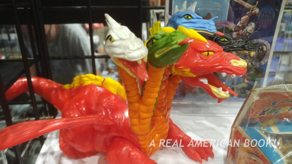 Over in the corner I finally got to catch up with Carson Mataxis and Sam Damon. Mataxis, with a few collaborators, put together a sublime book of G.I. Joe package art from the ‘80s and ‘90s, and was selling it at his booth. As he has now published a big tome, and I’m working on one, and we know some other people who’ve done the same, we compared notes, and with Damon, talked about sharing assets and being generous. Left to right, Mataxis, myself, and Damon: