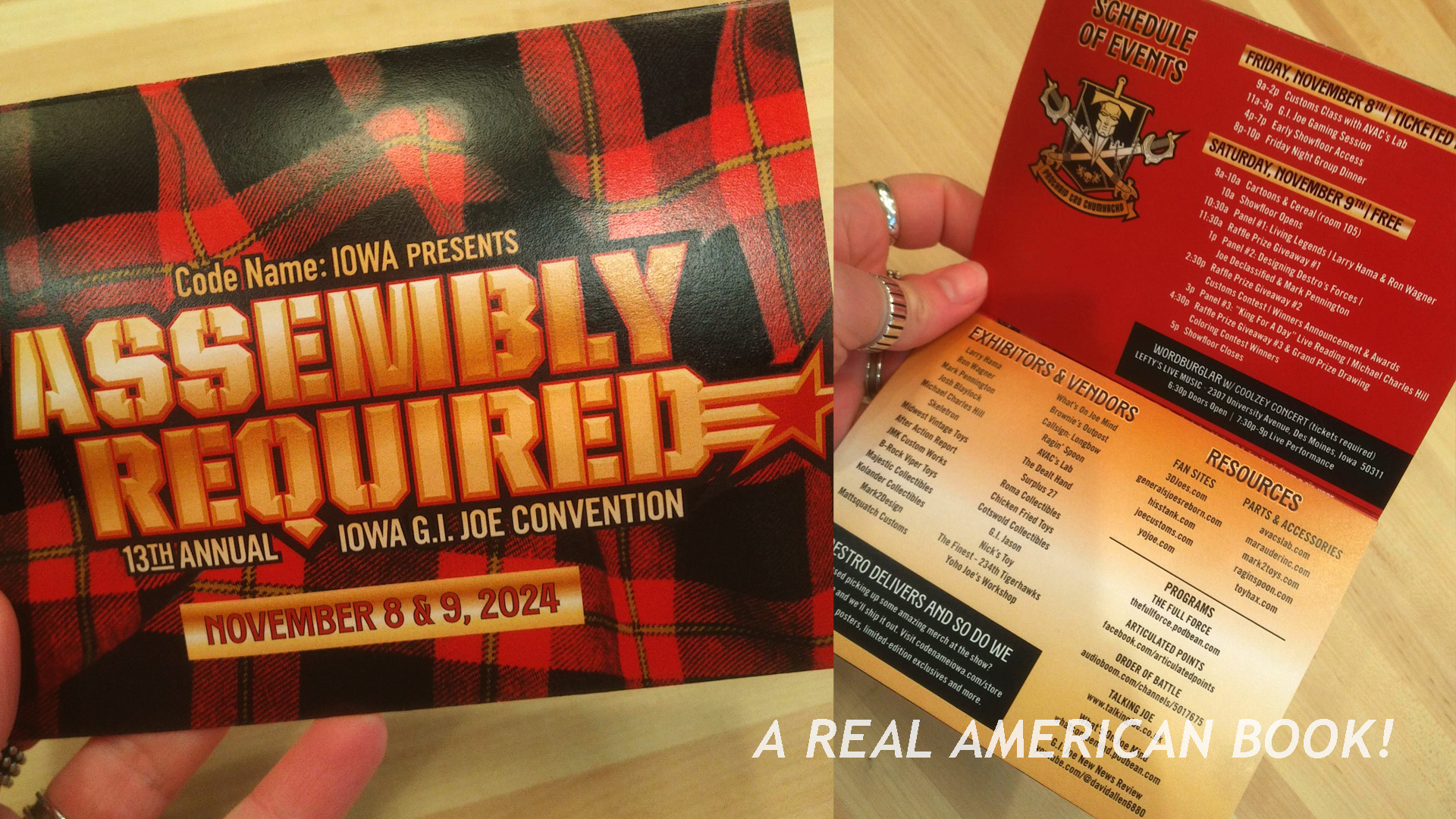 And let’s spend another paragraph on the program itself. Last year’s AR was Dreadnok-themed, and the “Assembly Required” stencil logo was flat and Dreadnok-colored, dark aqua and dull lime (think Dreaknok toy vehicles from 1986). This year’s is dimensional, metallic, and in Iron Grenadiers red, gold, and black. That didn’t happen accidentally. A thoughtful graphic designer who knows G.I. Joe inside and out decided to pay attention to those details and make them awesome. Here’s another: