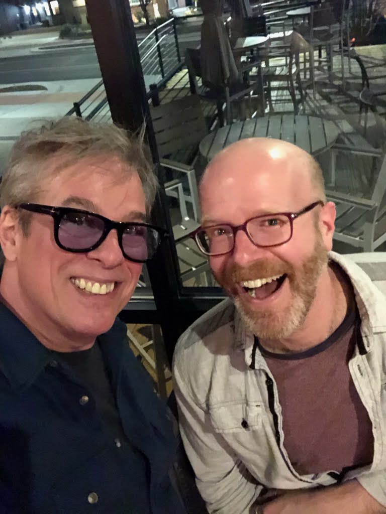 Inside the hotel, up in a deluxe suite, I talked with con organizer and graphic design whiz Brian Sauer while we waited for a few more people to show up. Sauer has had a busy year of design jobs, and spoke of his hopes and expectations for Assembly Required’s attendance. Having Larry Hama as a guest, as well as the 2023-2024 G.I. Joe renaissance (think Classified toys and Skybound comics) was key. I talked about G.I. Joe comics ordering and sales, and my hopes for the Tom Reilly signing at my shop, scheduled for a week later. (I’ll post about that here at the blog after my AR multi-parter is done.) Here’s a photo of us from the next night: