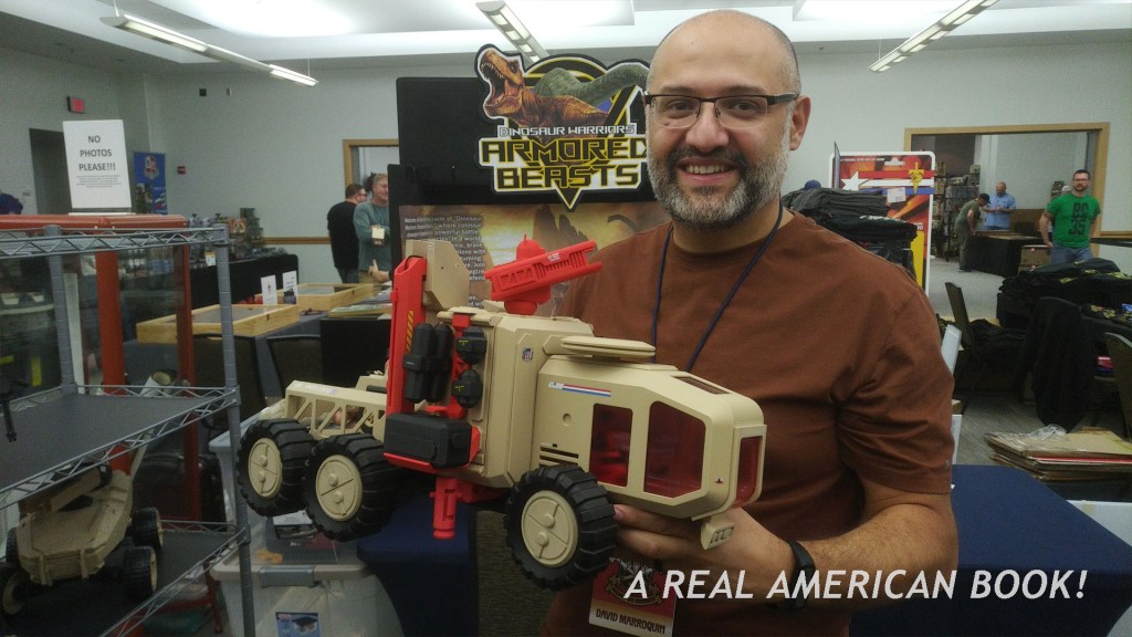 Here’s David Marroquin, who had played the RPG but excused himself a little early because he was a dealer and needed to set up his table. Marroquin designed and printed this fun G.I. Joe-scaled vehicle.