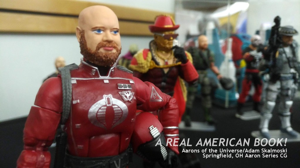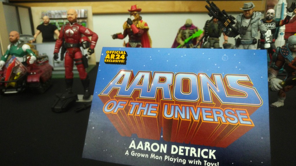 This requires some explanation. There’s a beloved brick and mortar toy store in Springfield, Ohio called ROMA Collectibles. Its owner, the lively Aaron Detrick, a toy con fixture, was diagnosed with cancer before JoeFest in August. Many of his friends are toy makers and customizers, and organized this amazing online auction featuring 12 different action figures-as-Detrick to raise money and show their support. The toys were auctioned on Facebook during AR, with the actual toys on display there, as most of the maker/customizers would be in attendance, as would Detrick himself. I particularly enjoyed some of the punny names.