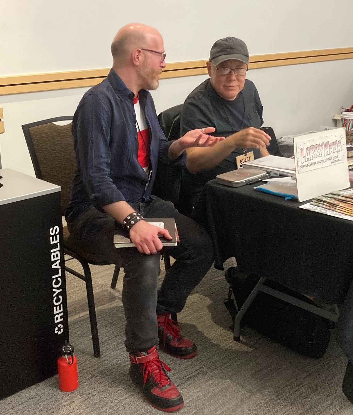 I wound up at a different table, and spoke with Kenny Koepnick and Mike Irrizary. Mike kindly said that the What’s on Joe Mind podcast had been hyping the Hub Comics/Tom Reilly signing, which I appreciate. This led Koepnick to ask if Hub Comics events are successful, so we compared notes. We talked about hosting parties, art shows, and comics people at my store, and Power Rangers and pro wrestlers at his. Not all events make a lot of money, but they raise the visibility of a store, and are community events, so they generate interest and value. (My wife once saw three people walk past my store on a regular afternoon, one was local and the others seemed like out of town friends, and the one pointed to the Hub Comics sign, said it was a good store, and that it had signings and events all the time. I appreciated the sentiment and the exaggeration.) Around 10 everyone headed back to the Hilton lobby.