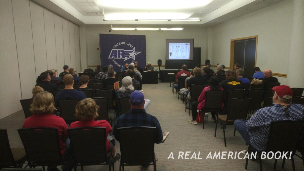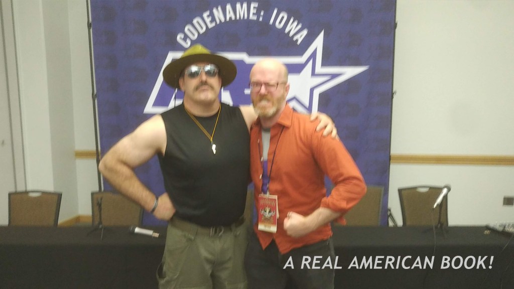 And here were the Codename: Iowa folks starting the day, selling merch from past AR cons, and rad t-shirts. Perhaps Alex Bainter’s expression there on the right makes it seem like this was some dire moment of stress, but it wasn’t — it’s just a snapshot at a random moment.