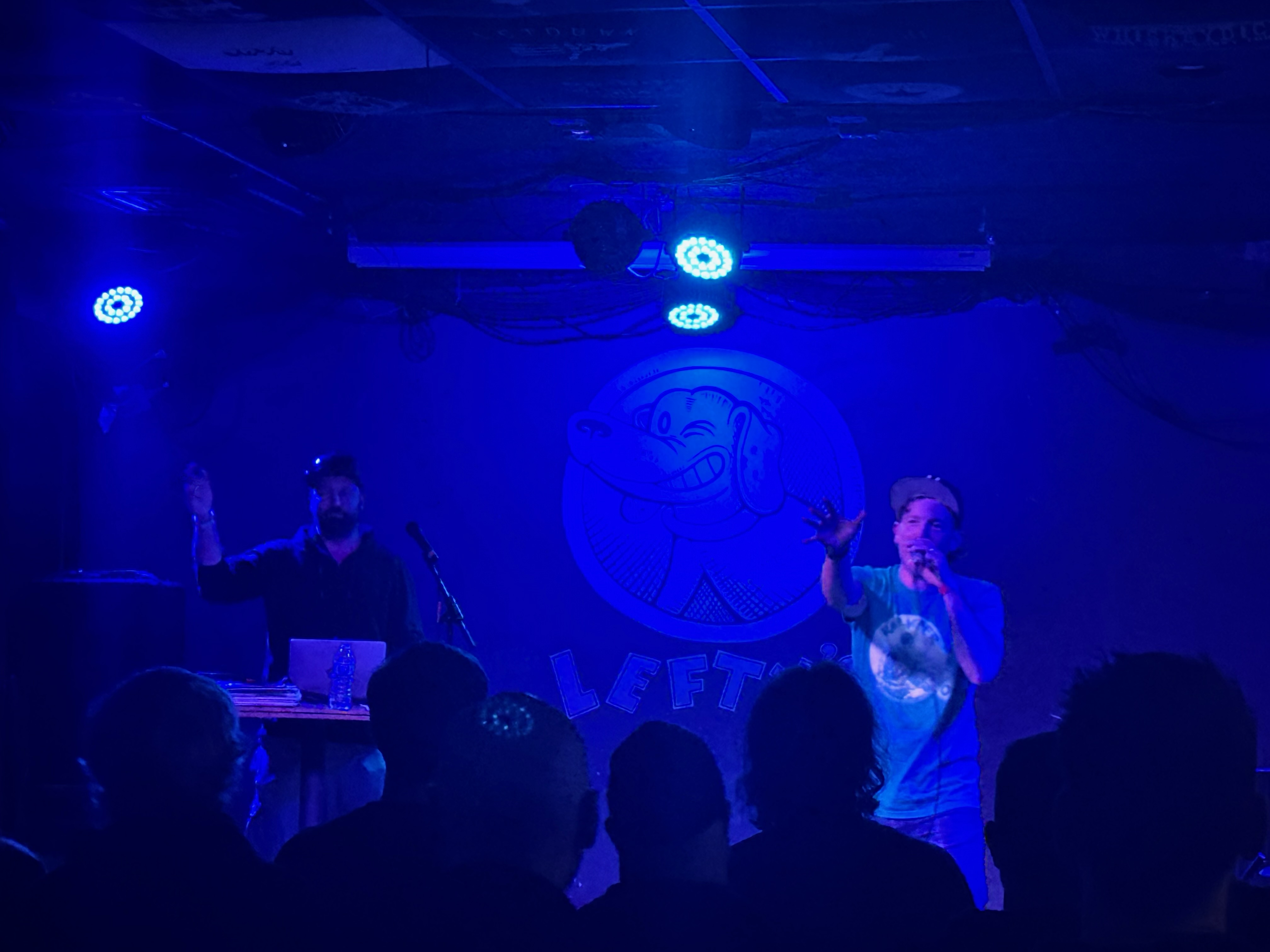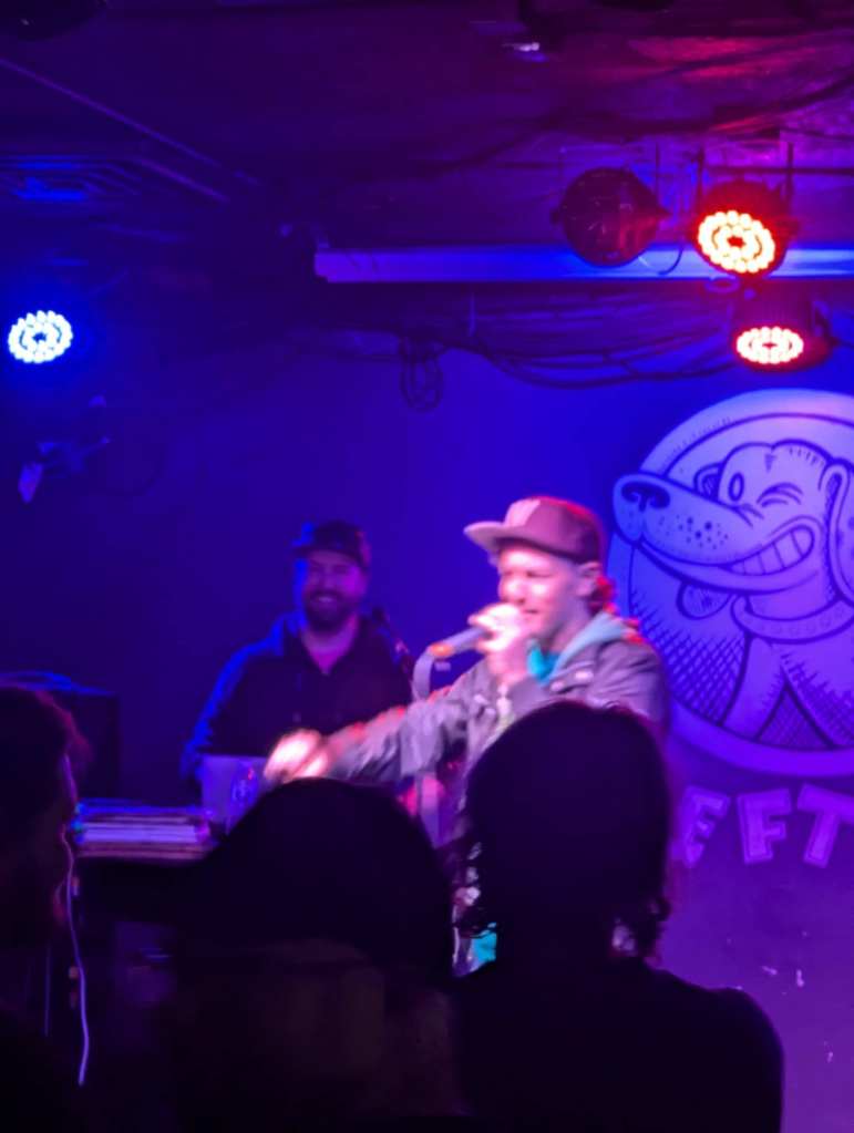–and a bunch of AR attendees were going, so it felt like the thing to do. The show was 2 miles away at a venue called Lefty’s (a 5-minute drive, and surely no one did the 40-minute walk!), so this felt like a bigger swing than the dinner joint across the street, or the barcade that was 20 minutes by foot across the river. Another reason to attend the music show was that pal Chris McLeod (a former Talking Joe host and now maestro of the popular news stream The Full Force), aka Diagnotstik80, who has provided beats for Wordburglar recordings, would be behind him as DJ at the show.