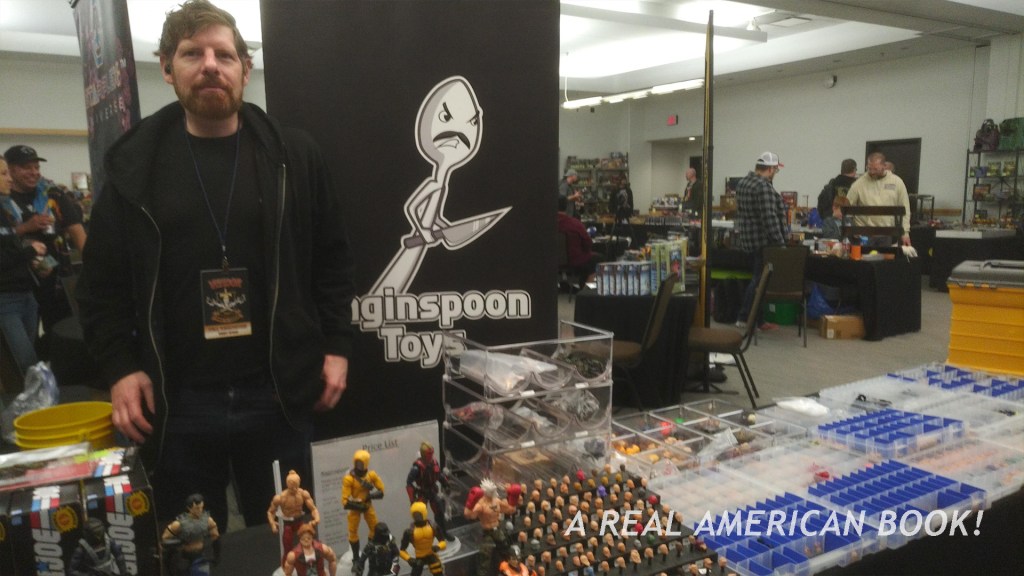 At some previous conventions I’ve tried to take photos of dealer/vendors at their tables. I’m not a fancy photographer, but I’m trying to capture a bit of portraiture here. In keeping with too much to do and not enough time at Assembly Required, I only got a few. Here’s Raginspoon Toys, click all photos to enlarge:
