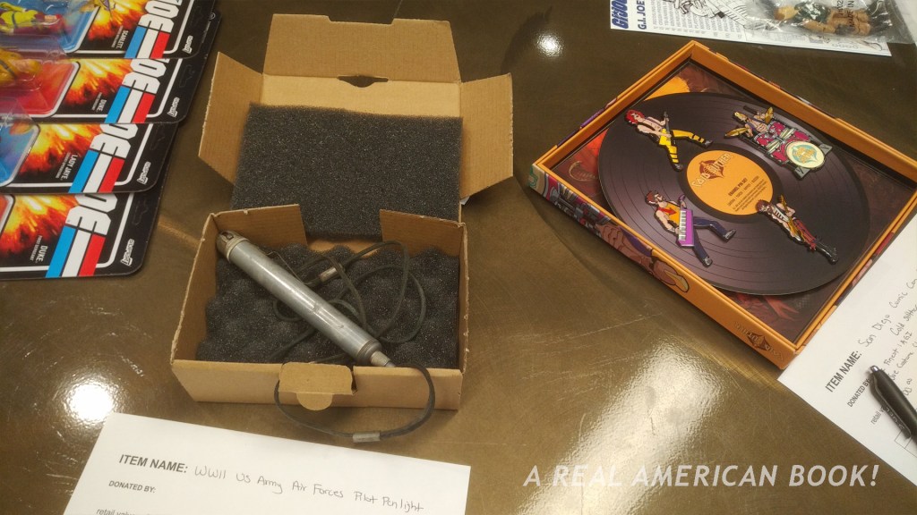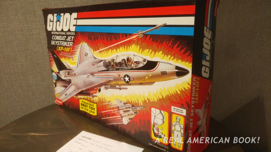 Say, author John Michlig donated a copy of his GI Joe: The Complete Story of American’s Favorite Man of Action, which is actually my favorite book and is much of why I have this blog and am writing my own G.I. Joe history book. (I think of my book as a sequel to Michlig’s.) I have had a copy since it was released in 1998, and I don’t need a spare. But my shop sold its copy long ago and I’ve pondered the notion of buying another to sell there. This seemed like a sign that I should try and bid on the auction since Michlig signed this copy. That the dust jacket is torn in no way diminishes any of this.