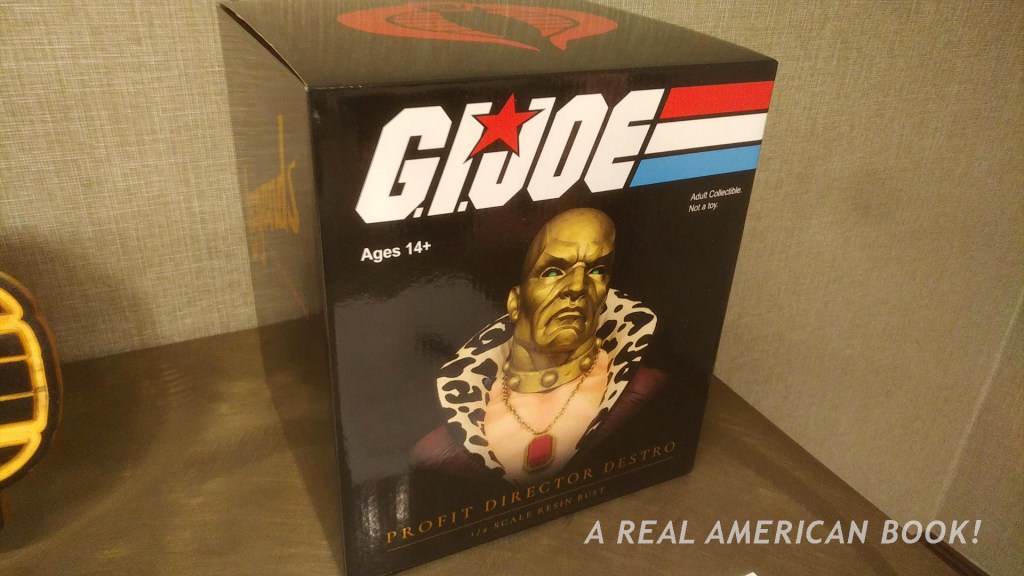 Here’s a Profit Director Destro bust donated by Diamond Comic Distributors. This is funny for a few reasons. One, this color scheme on Destro is sort of a joke that Hasbro and fans made official after running with it. Two, Diamond declared bankruptcy late last year (as a comic shop owner who has ordered from Diamond every week for the past 13 years, the company is always on my mind). I was impressed that the DFW Club was able to get through to someone at Diamond, explain the charity auction, and that Diamond followed through on shipping the item to Texas. (This is all a guess.) Diamond has had a lot of ups and downs these past seven months. I’m pleased this item could help bring up the tally for the charity — it had three bids when I looked at it.