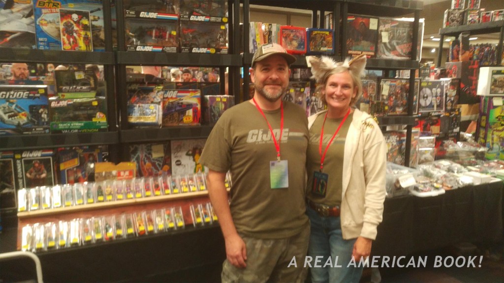 I was now missing the 10am event, the G.I. Joe Animated Series Panel. This featured Zach Hoffman, Gregg Berger, Lisa Raggio, Keone Young — all voice actors, and writer/producer Michael Charles Hill, plus comics artist Jamie Sullivan. I had thought I’d have time to sit in for part and get a photo, but in talking with Selman and Jamie Sullivan’s wife Erin Sullivan (manning his table during his panel), my time was in fact up. Erin offered to send me a photo, and ran in while I figured out how much cash I had left.