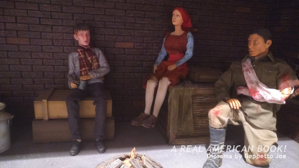Zooming into one of the underground rooms in the rear, this soldier is keeping these two children safe. Or is it the other way around?