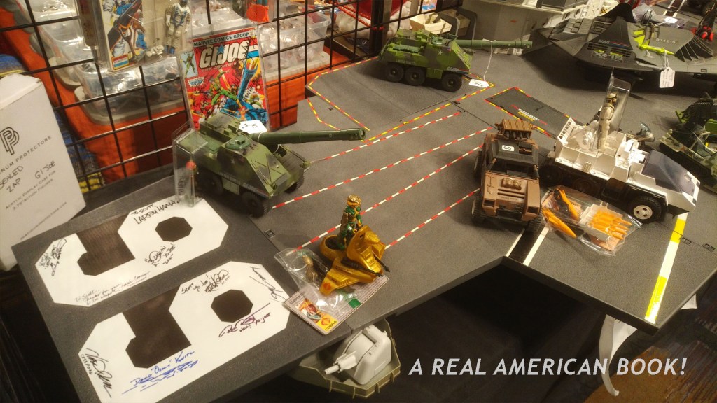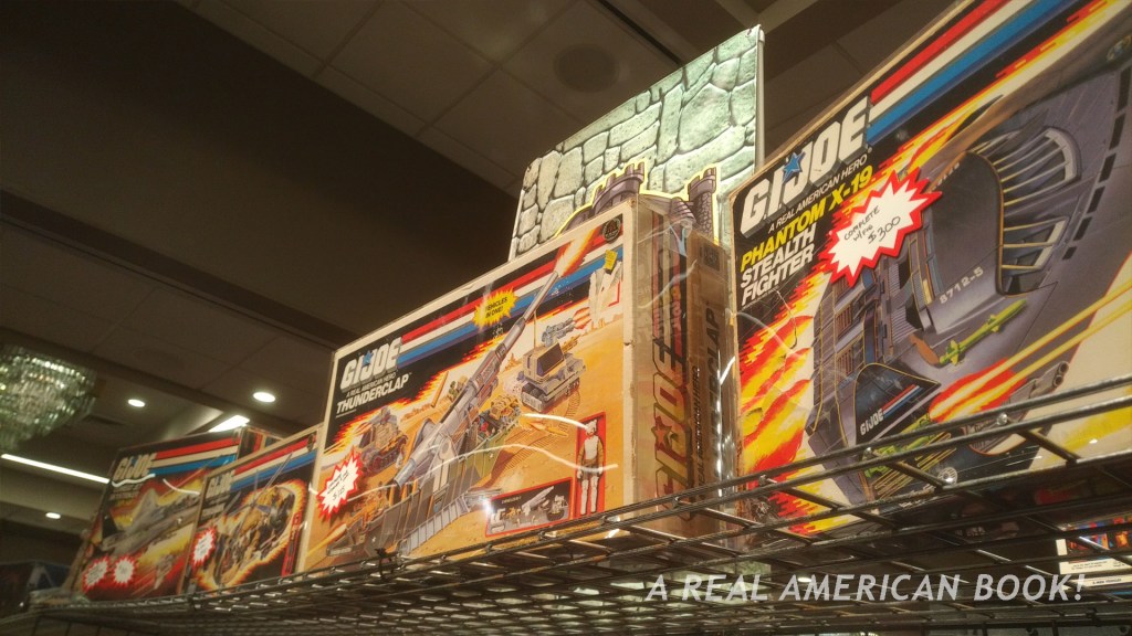 I’m going to pause on the actual timeline of my Sunday attendance here, because at this moment I realized I needed to leave. I’ll pick this up below, but in the interim, here are a few more dealers and toys for sale! In my JoeFest report (the convention that took place a week earlier) I had remarked how many USS Flaggs were for sale. I’m pleased to report that this largest of all Real American Hero vehicle/playsets was represented at the DFW Show — a loose one. I think it was for sale, but it was also doing double-duty as a table: