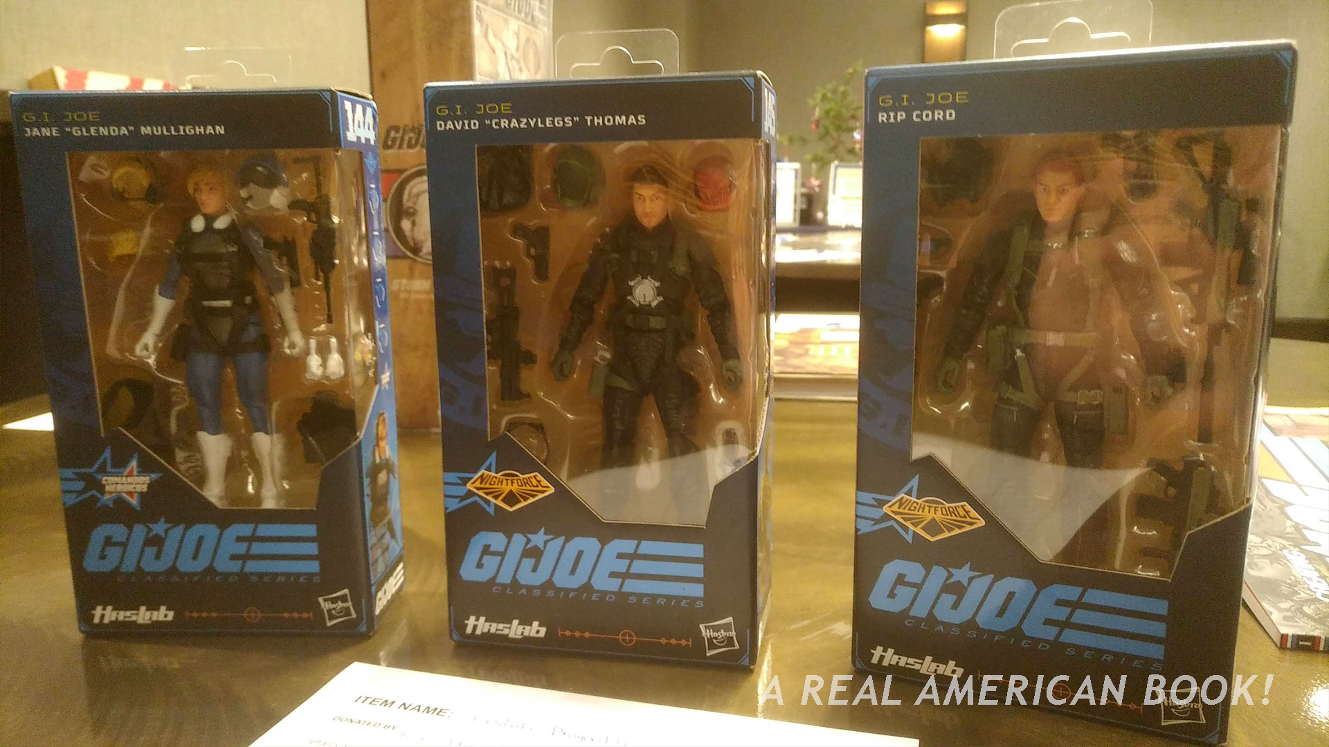 Ken Davis donated these three HasLab G.I. Joe Classified Dragonfly action figures. I have only somewhat followed the HasLab campaigns. I certainly want them to succeed, but man, those vehicles end up being so big!