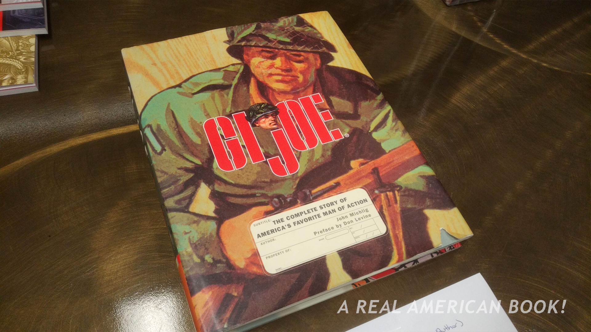 Say, author John Michlig donated a copy of his GI Joe: The Complete Story of American’s Favorite Man of Action, which is actually my favorite book and is much of why I have this blog and am writing my own G.I. Joe history book. (I think of my book as a sequel to Michlig’s.) I have had a copy since it was released in 1998, and I don’t need a spare. But my shop sold its copy long ago and I’ve pondered the notion of buying another to sell there. This seemed like a sign that I should try and bid on the auction since Michlig signed this copy. That the dust jacket is torn in no way diminishes any of this.